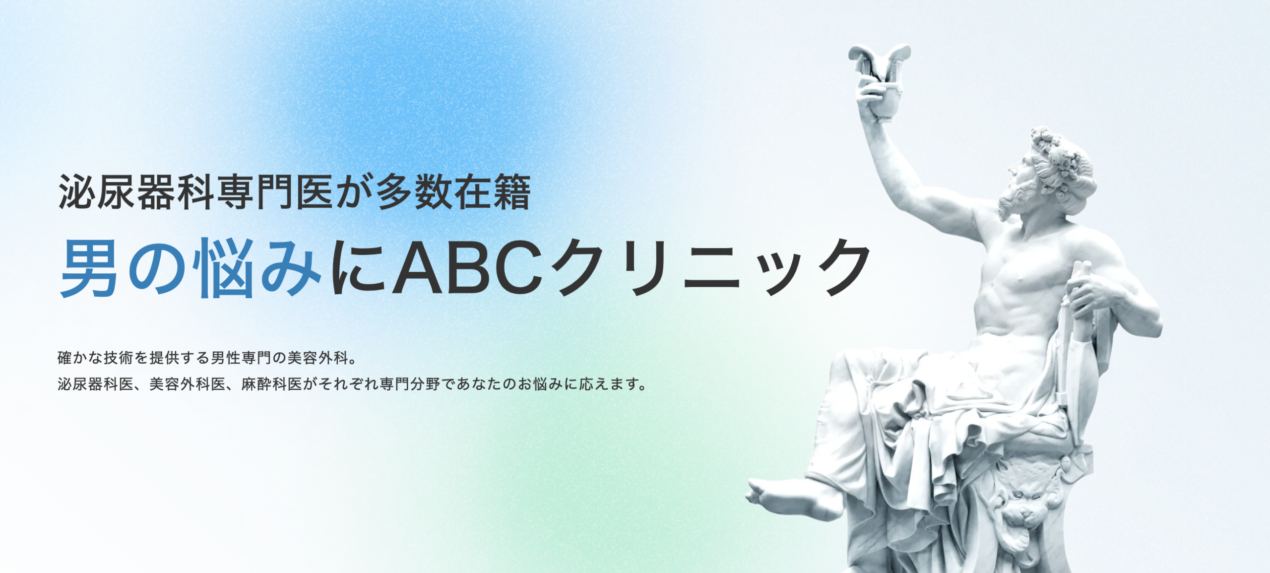 ABCクリニックは、全国に展開している男性専門の美容外科クリニックで、包茎治療・増大治療・早漏治療など男性特有の悩みに特化した治療を提供しています。特に包茎治療においては長年の実績があり、多くの男性から信頼を集めているクリニックです。